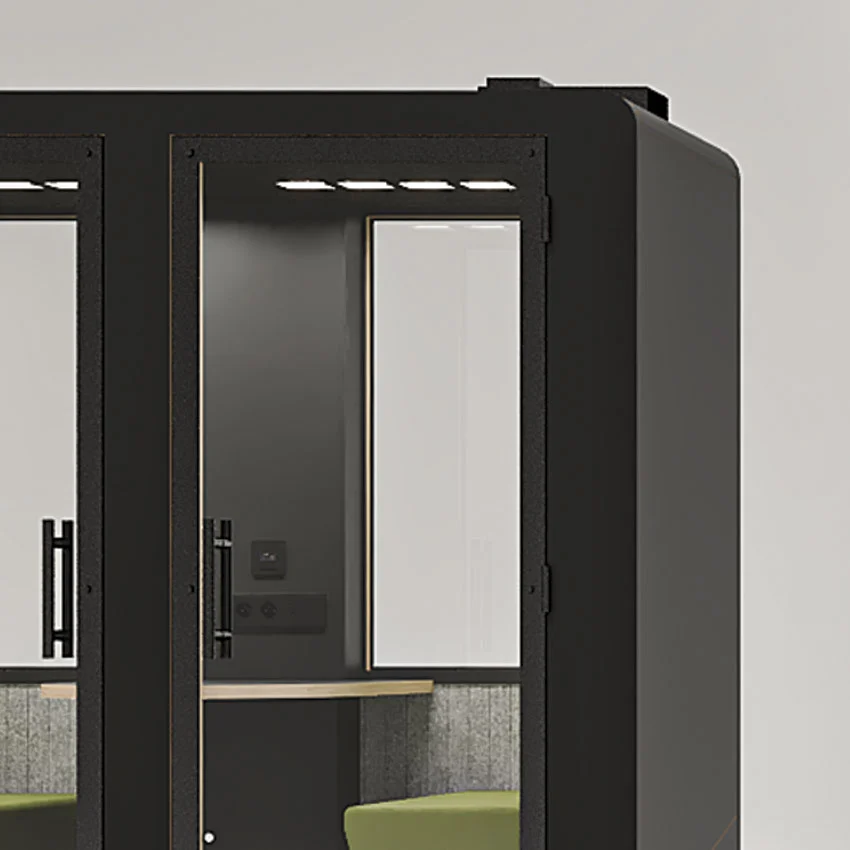 De acordo com a norma ISO 23351-1, classificação para cabines telefónicas de escritório, as nossas cabines possuem uma boa insonorização, absorvendo 29.5 dB.