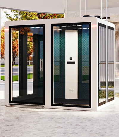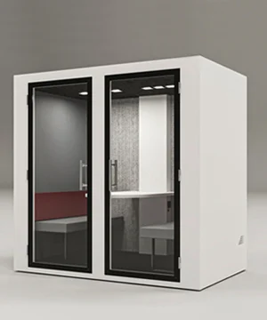 A cabine Booth L oferece uma nova visão aos escritórios modernos. Trata-se de um espaço acústico que cria um ambiente ideal para reuniões de pequenas equipas, brainstormings ou outros trabalhos colaborativos.