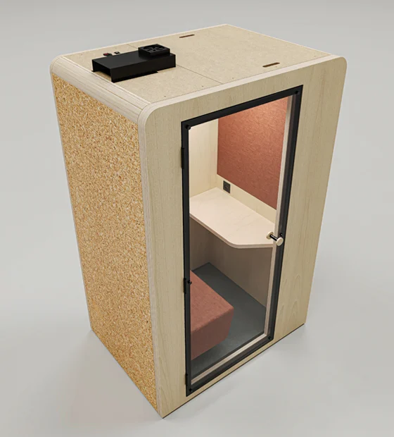 Com um design moderno e sustentável, a Uno é uma cabine acústica destinada a 1 utilizador. Projetada para trabalho individual mais intensivo, dispõe de um assento ergonómico para uma postura correta, bem como uma mesa de apoio. Assim, proporciona o bem-estar e um ambiente isolado adequado a quem procura concentração.