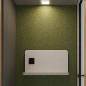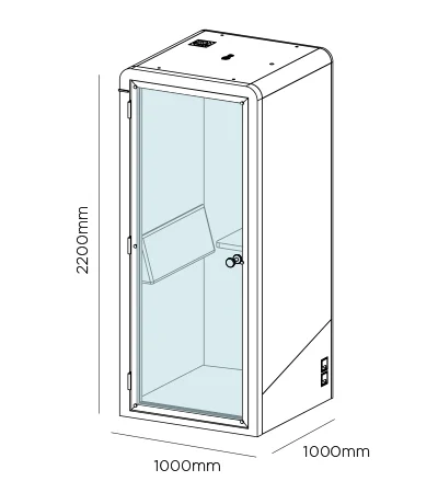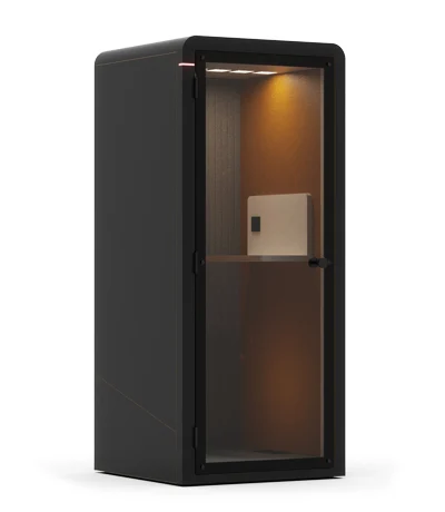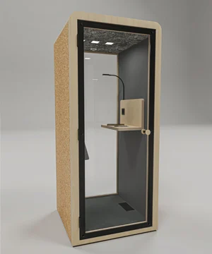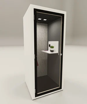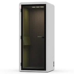 Questa cabina è dotata di tutti gli elementi fondamentali per un utilizzo efficiente, ad esempio: illuminazione a LED, presa elettrica e un tavolo ergonomico perfetto per una varietà di attività.